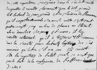 Par oubli d’inscription de sa naissance sur le registre paroissial, au moment de son mariage le futur époux est affublé de celle d’un homonyme et de faux parents, selon le seul acte trouvé à Mercurol paroisse Saint-Clément. -Vue 156, Chanos Curson, 5 RI 151/R8 période 1762/1792, AD26.