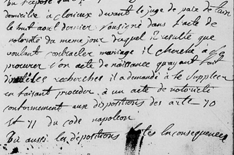 Par oubli d’inscription de sa naissance sur le registre paroissial, au moment de son mariage le futur époux est affublé de celle d’un homonyme et de faux parents