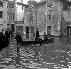 Crue du Rhône en 1955, quartier de la Basse-Ville, à l’arrière-plan, la rue Pêcherie.
