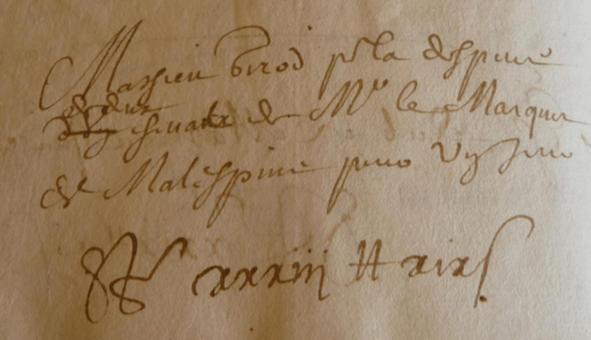Je ne trouve pas de documents parlant du marquis de Malespine au temps de Louis XIV ; seulement un élément de l’année 1764 en lien avec l’armée (B 2763, page 396/411, AD11) :