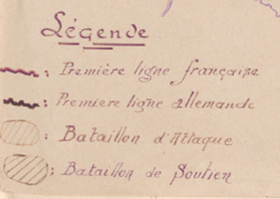 « La situation le 15 au soir est la suivante : Nous sommes sans liaison avec le 55e qui est à notre gauche, mais nous occupons Munich à notre droite jusqu’à 8925 et nous nous relions en 9026 avec le 173e. Les 17e et 18e compagnies reçoivent l’ordre d’établir notre liaison à gauche et de progresser par les boyaux et tranchées jusqu’à Marfa, s’y établir si possible ou tout au moins établir solidement une ligne d’avant-postes au nord de la route Vacherauville-Louvement avec pour but d’encercler la côte du Poivre, le 55e à notre gauche se dirigeant également sur Marfa par la route de Vacherauville ».