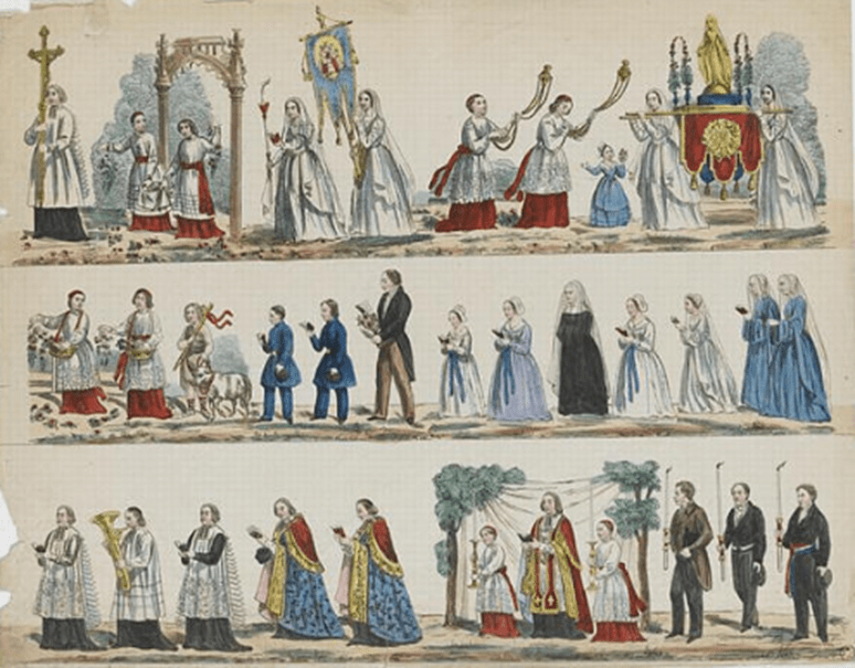 Article 3ème : le costume est exigé aux processions solennelles de la paroisse : le jour de l’Immaculée Conception à la messe, aux enterrements des congréganistes. Les congréganistes ont seules le droit de porter ce costume.