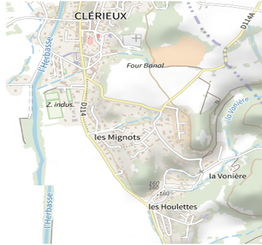 Localisation des lieux de vie nommés dans ce document- carte IGN d’aujourd’hui [1]: