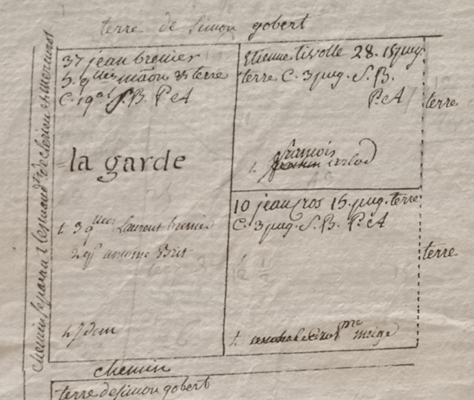 Le nom de Gobert, lui, est inscrit en tant que possesseur de terres sur le plan datant du XVIIIème siècle des terriers de Veaunes appartenant au Chapitre de Saint-Barnard : (5)