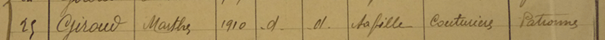 En 1931 je lis son nom sur l’état de recensement du village où elle exerce le métier de couturière à son compte, tout en vivant chez ses parents [8]: