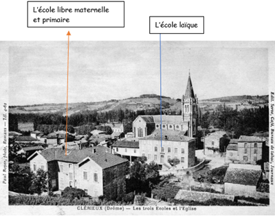 Dans le village de Clérieux, avant cette loi, est là une école privée religieuse ‘l’école libre* (maternelle et élémentaire du Sacré-Cœur – cote 97 Fi 1, AD26).
