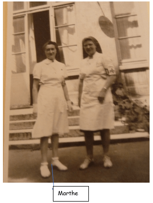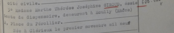 Entre-temps diplômée auxiliaire Croix-Rouge elle pratique durant quatre ans durant la guerre, dont ces photographies familiales, ci-dessous, à Gerland en 1940 ? confirment son diplôme et en 1949 sur l’acte de succession de grand-père[10] :