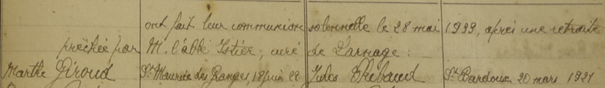 Le 28 mai 1933 Marthe fait sa communion solennelle * après une retraite prêchée par le curé de Larnage [9]: