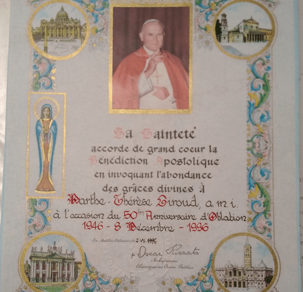 Le pape accordant la bénédiction apostolique à Marthe (document familial) :