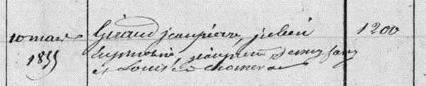 Elle lègue à son mari et à ses enfants le 10/03/1855 la somme de 1200 frs (valeur du mobilier, argent, rentes et créances) :
