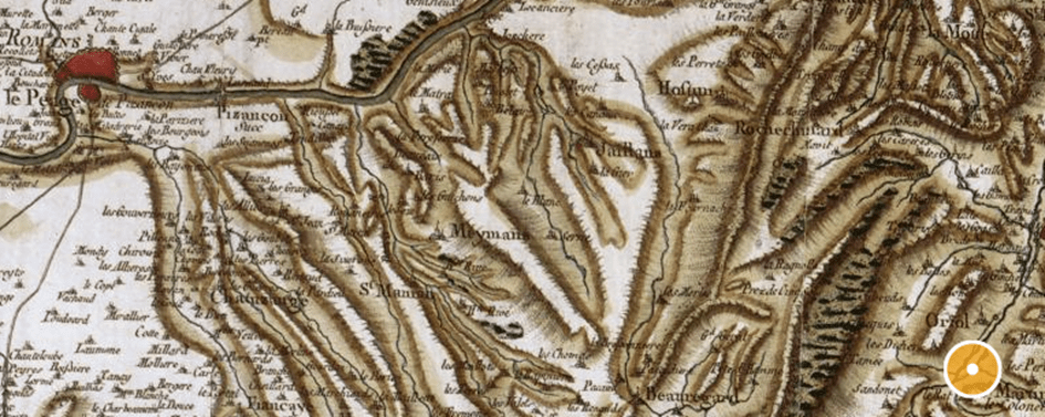 Bourg de Péage en haut à gauche, Saint-Martin le Colonel en bas à droite soit une distance de 30 kms entre les deux lieux.